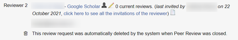 When peer-review is closed, the system will now mark all the review records of not-invited reviewers as automatically deleted. As per previous behaviour, the system was removing the review records (that would disappear from the Process Manuscript screen).