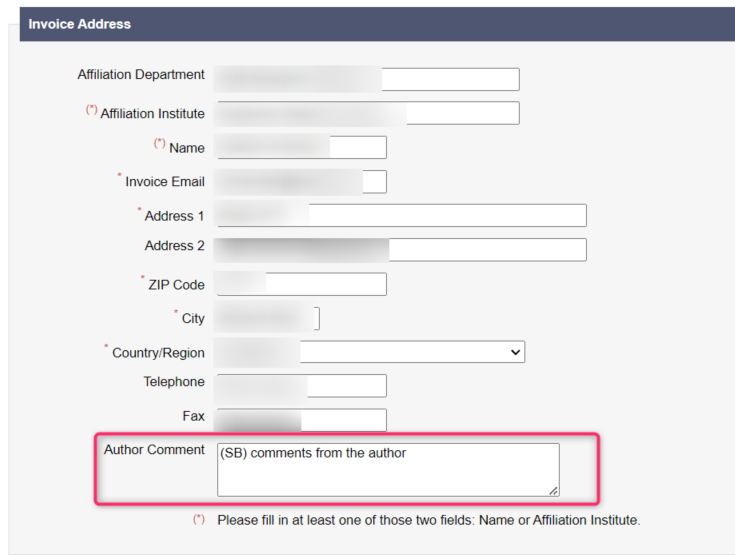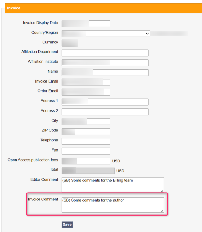 The fields Author Comment and Invoice Comment are now displayed on the APC invoice in both online html and pdf formats.