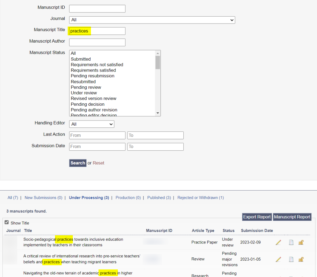 The search of a manuscript title based on a partial match now works across all JAMS customer instances.