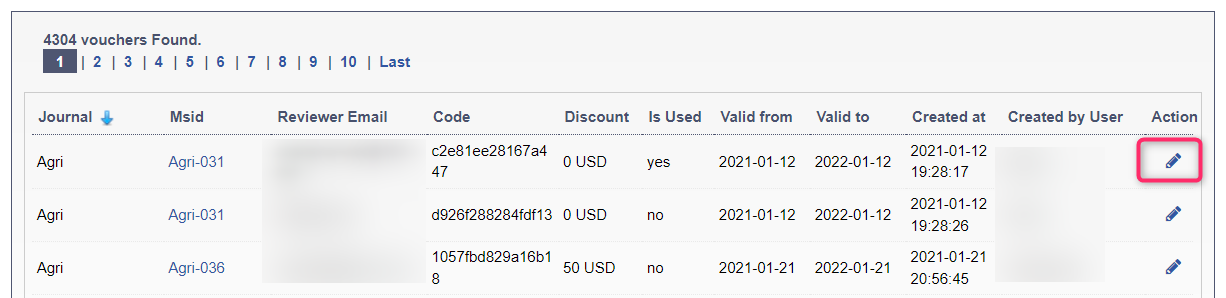 AIMS editors have now the possibility to update Discount Vouchers and change the reviewer email and used Y/N fields.