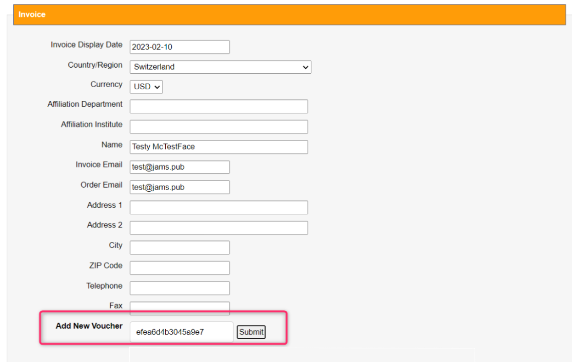 Apply discount voucher to manuscript invoice
